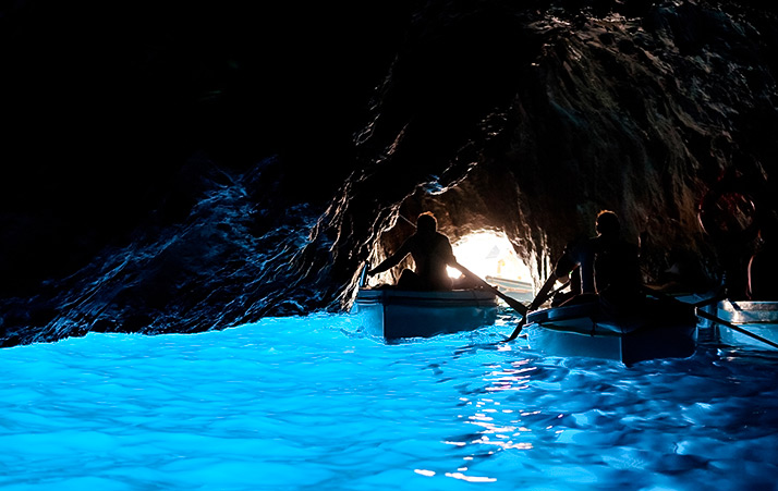 南義安排「卡布里島+藍洞」門票體驗,依天候搭乘小船進入藍洞秘境,藍光映照洞穴內壁,展現地中海最夢幻的自然奇景。