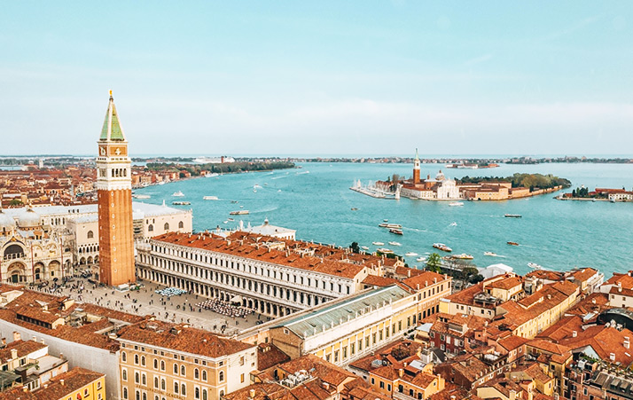 來到威尼斯,再登「聖馬可鐘樓」,360度俯瞰水巷、運河與紅瓦屋頂交織而成的水都全景,從高處理解這座城市為何獨一無二美麗。