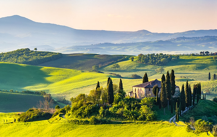 前往托斯卡尼丘陵,入住「莊園旅館1晚」,在葡萄園與橄欖樹環繞下,安排「酒莊品酒體驗」,以味覺感受義大利最經典的慢生活哲學。