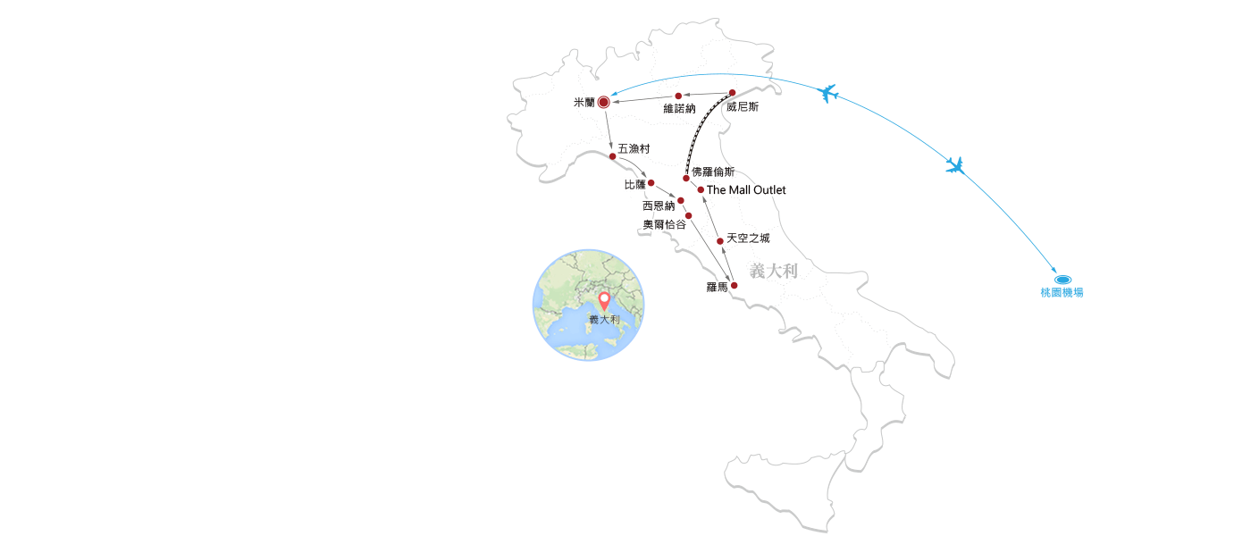 行程採「米蘭進、羅馬出」雙點進出設計,完美對應義大利南北狹長國土,